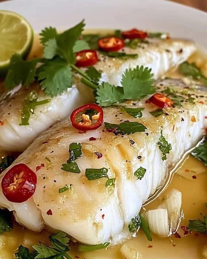 Tajska Ryba Gotowana na Parze z Limonką i Czosnkiem