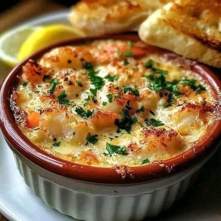 Zapiekanka z krabów i krewetek ze śmietaną